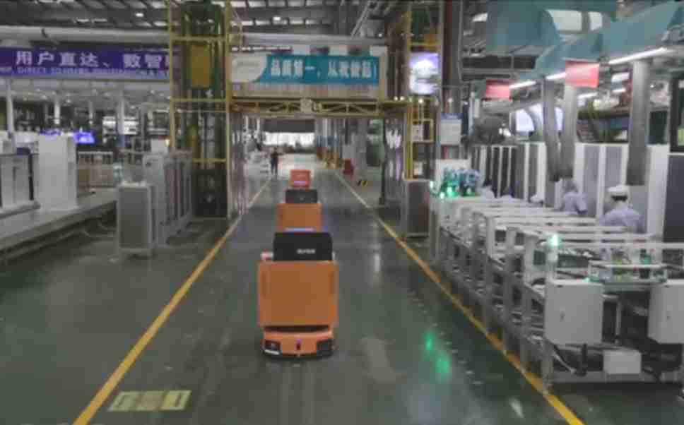 为车载冰箱物流配送打造的智能解决方案,,包含产中物流通过潜伏举升AMR搬运至线边,,,产后成品物流智能仓储,,流程包含产中物流智能齐套入库,,,,线边安灯叫料AMR智能配送至线边,,,,成品入库、、、、出库,,,,通过无人堆高车机器人,,,,智能仓储管理替代人工作业管理,,,实现更高存储、、更高效率、、更具柔性化的解决方案。。
